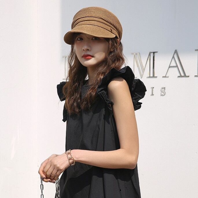 サイドのゴールドメダルチャームがポイントのストロー素材のキャスケットです。ソフトなストロー素材で通気性も良く、お好きなシルエットにアレンジができます。裏側にアジャスターがついており、長さを調整できます。暑さや紫外線を防ぎつつ、春夏のコーディネートを盛り上げるマストアイテムです。アシンメトリーなシルエットでハイセンスな雰囲気に仕上がります。