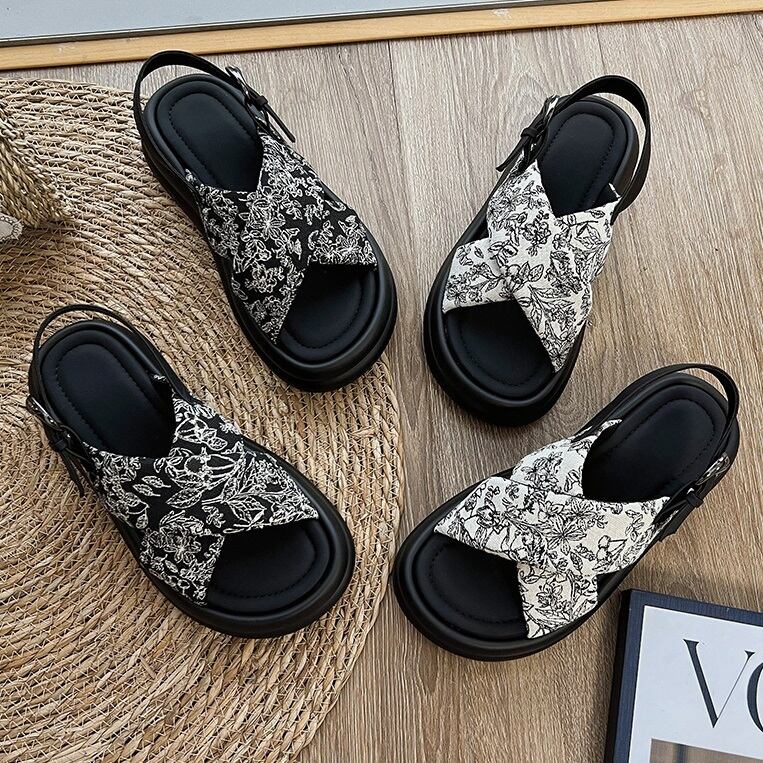 ペイズリークロスベルト プラットフォームサンダル アイボリー SH00217