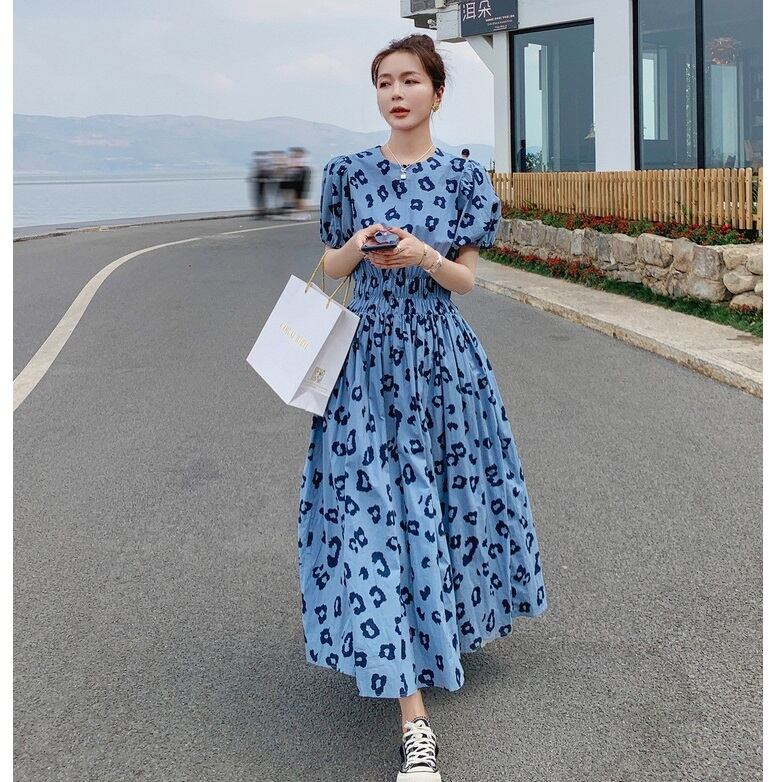 パフスリーブ レオパードプリントワンピース ペールブルー OP00214