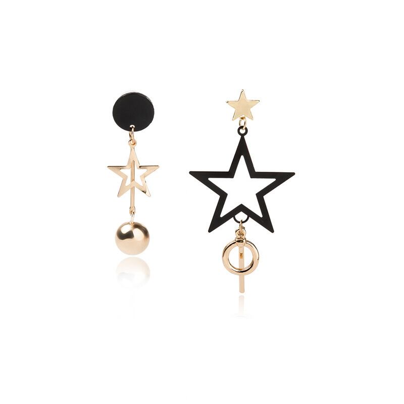 スター+サークル アシンメトリードロップピアス ゴールド/ブラック PR00107