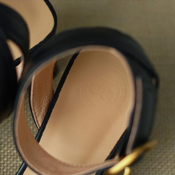 マットゴールドチャーム アンクルストラップ ヒールサンダル ブラック SH00223