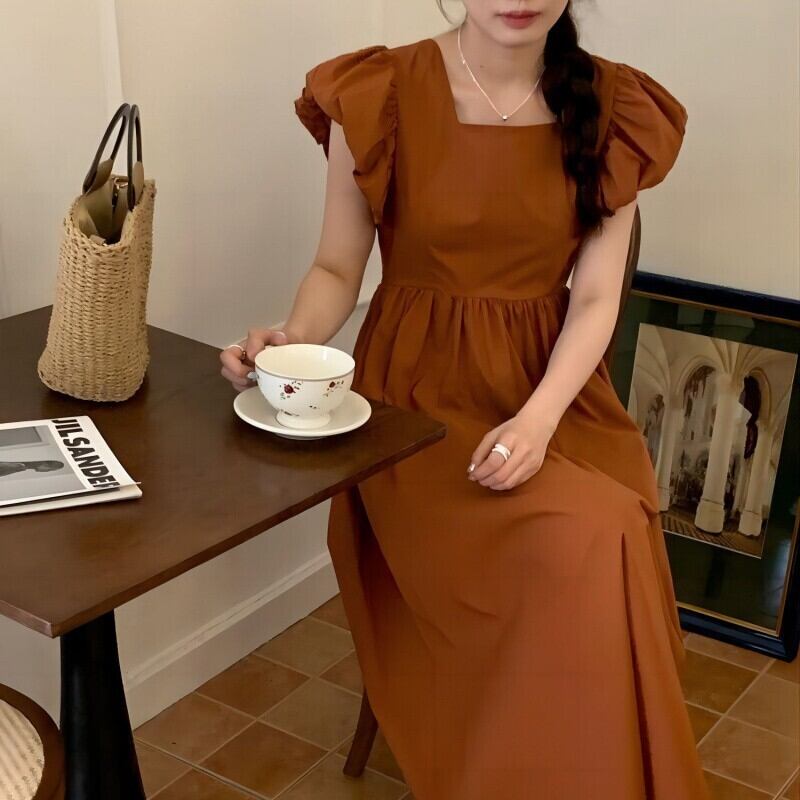 バッククロスリボン パフスリーブワンピース テラコッタブラウン OP00221