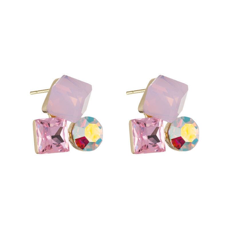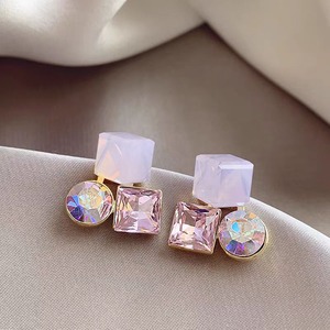 3種類のジルコニアのコンビネーションがスタイリッシュなスタッズピアスです。ピンクのキューブ、サークルとスクエアのジルコニアのミックスがオトナかわいいデザインです。光の角度や着る洋服によって、光り方や色の変化が楽しめます。1年を通して、コーディネートのアクセントになる、キュートなスタッズピアスです。