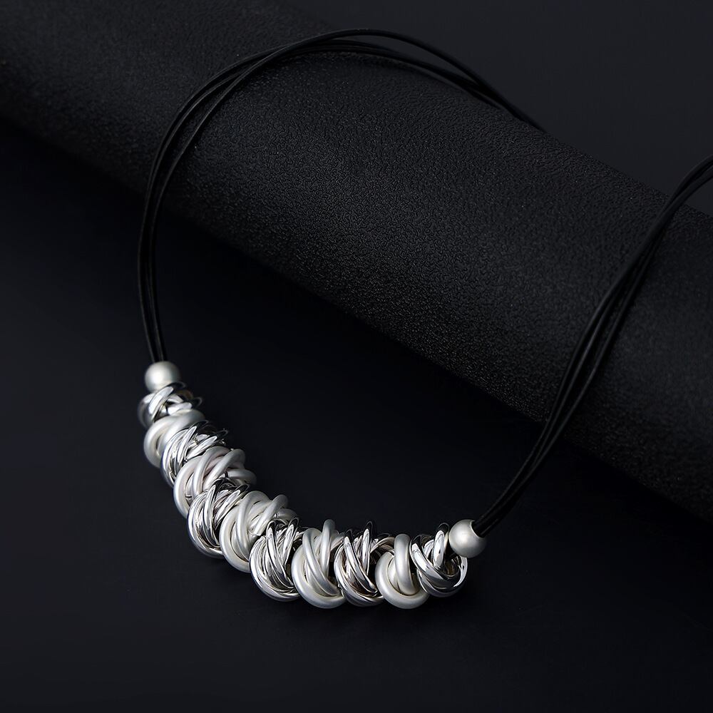 マットシルバーとシルバーの2種類のメタル素材をアレンジしたチョーカーネックレスです。アーティスティックなデザインで、シンプルなTシャツやブラウスほど、ぐっと華やかなスタイルに仕上がります。ジャケットなどのマニッシュなスタイルやモードなスタイルにもよく似合います。