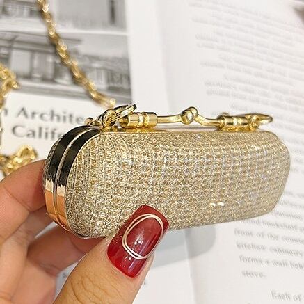 ゴールドチェーンとグリッターがエレガントなメタル素材のリップスティックケースです。リップスティック以外「何も入らないバッグ」です。ハーネスのように肩にかけたり、ネックレスのように身に着けても、コーディネートのアクセントとして幅広くお使いいただけます。コインケースや薬入れなど、アイディア次第でユニークな使い方ができそうです。