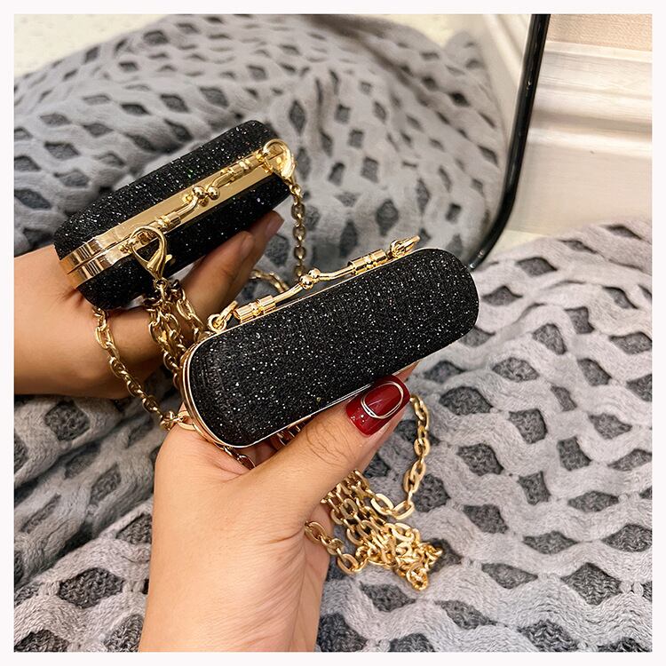 ゴールドチェーン付き リップスティックケース ブラックグリッター BA00568