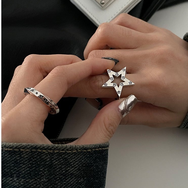 ※オープンリング1個の商品です。画像に映っている星形のリングは「ジルコニアデコレーション スターフレーム デザインリング RI00066」です。