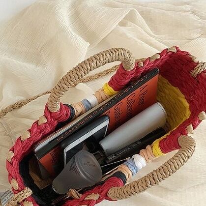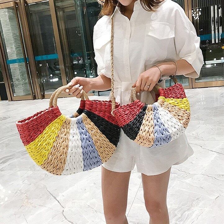 マルチカラーのセミサークルがポップなストロー素材のトートバッグです。ヴィヴィッドなマルチカラーで、夏のコーデをポップに彩ります。マチも幅もあり、すっきりと荷物を収納できます。幅広いスタイルのアクセントになる、おすすめのかごバッグです。