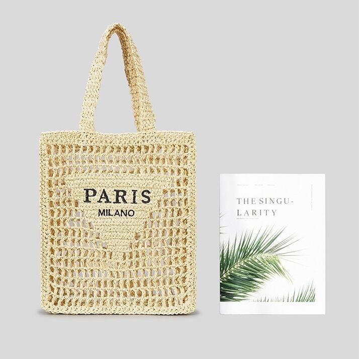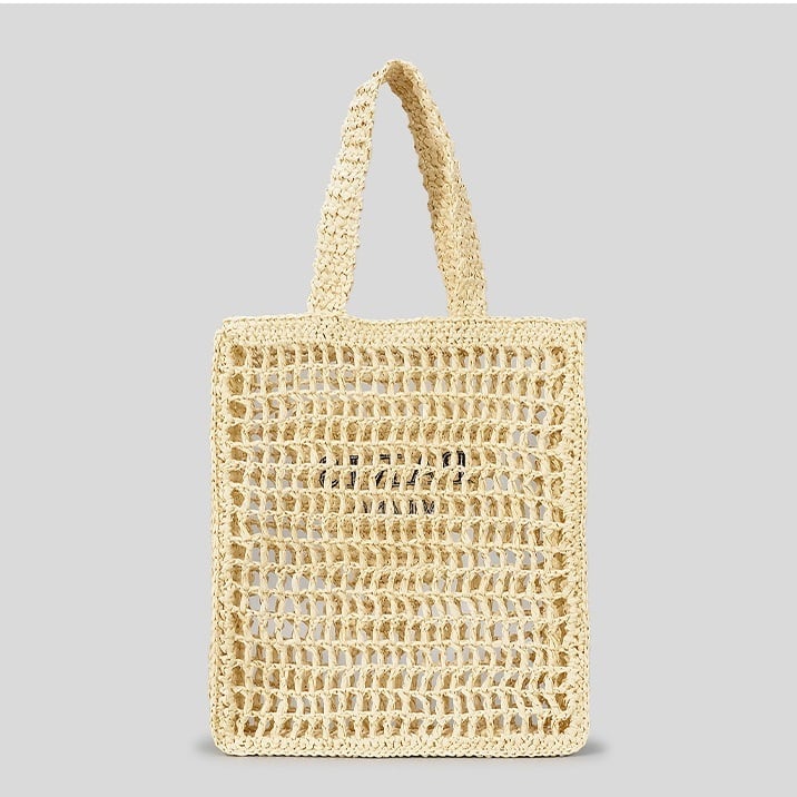 レタリングステッチがポイントのストロー素材のメッシュトートバッグです。A4サイズも楽々入り、マチも広く、荷物も多い方も安心のサイズ感です。プールや海など、楽しい春夏のムードにぴったりの、お出かけが楽しくなる、ポップなトートバッグです。
