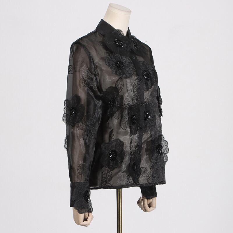 エンブロイダリーフラワーデコレーション シアーブラウス ブラック BL00166
