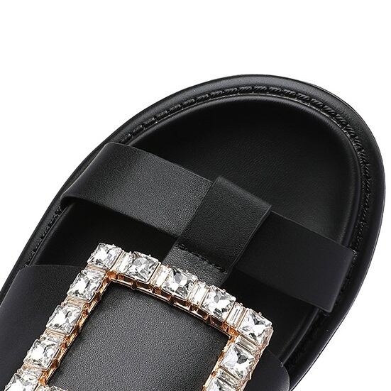 スクエアビジューがフェミニンなラムスキンのプラットフォームサンダルです。スクエアビジューと、ちょうど良いボリューム感で、足元がおしゃれにスマートに決まります。安定感のある4.5cmのソールとバックストラップで歩きやすさも◎です。リアルレザーでやわらかく、歩くほどに脚にフィットします。幅広いコーディネートが楽しめる、スタイリッシュなサンダルです。ラムスキンの割にお求めやすいプライスも魅力です!