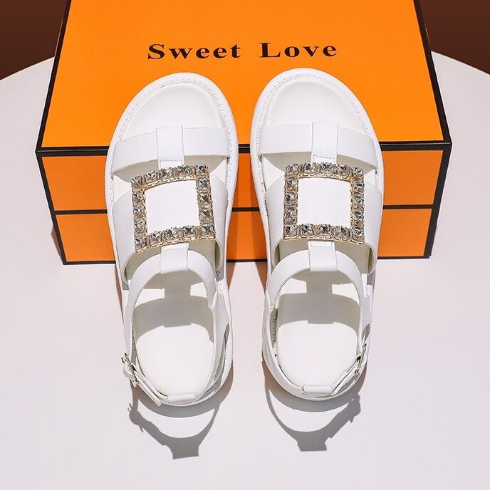 ラムスキン スクエアビジュー プラットフォームサンダル ホワイト SH00127