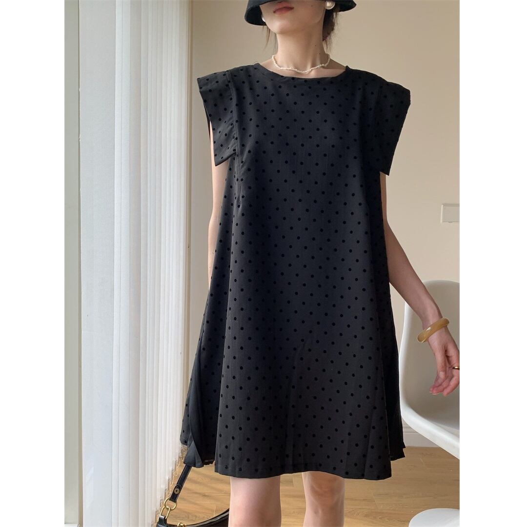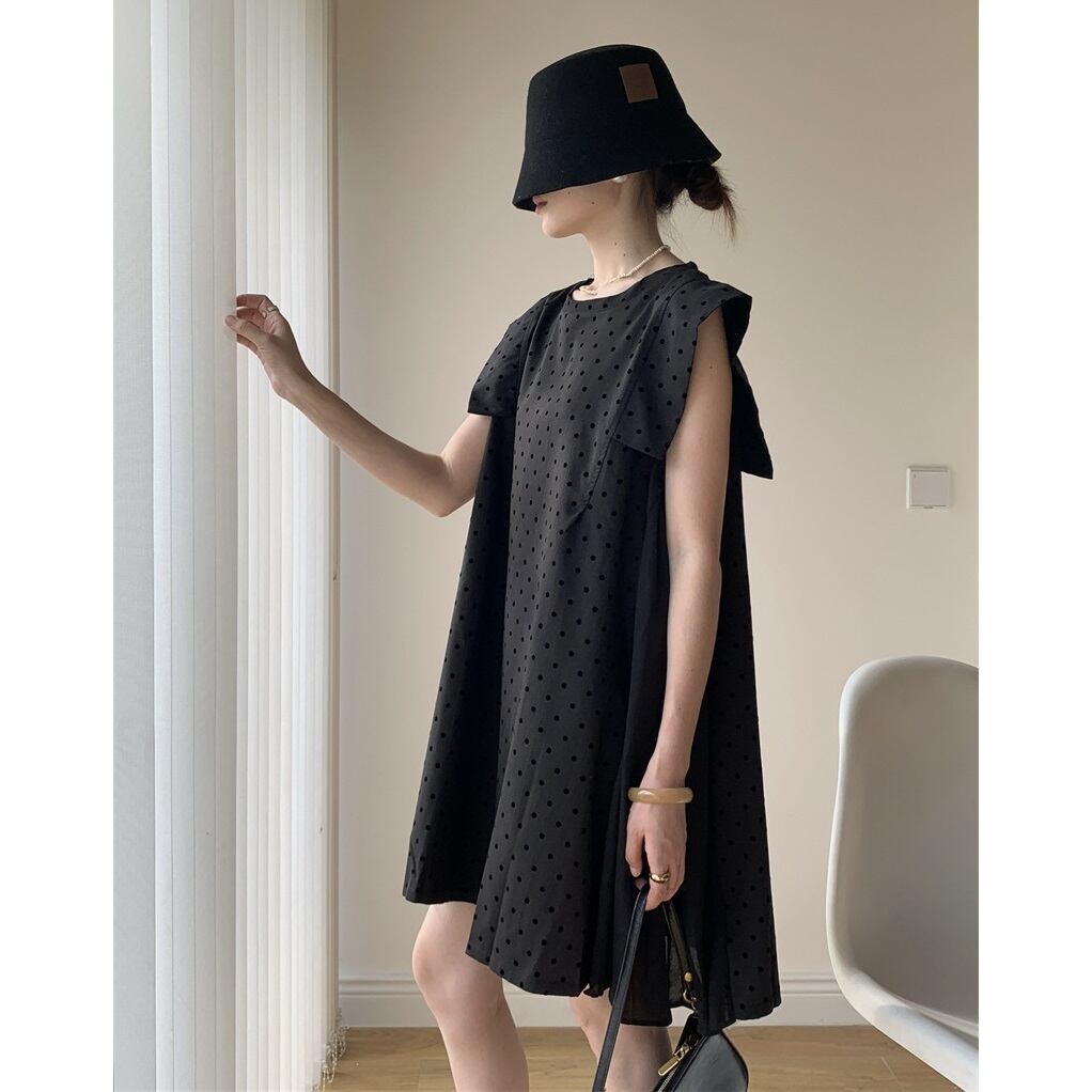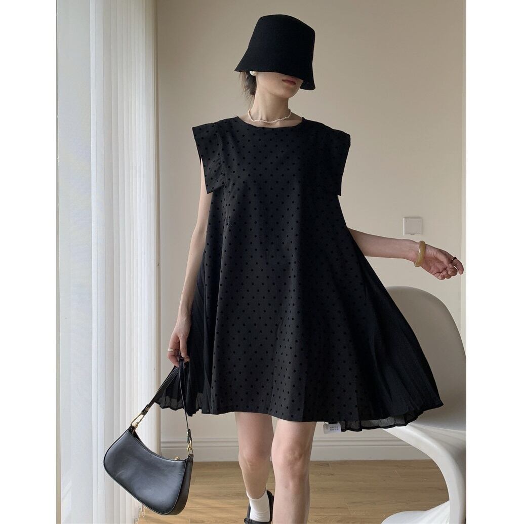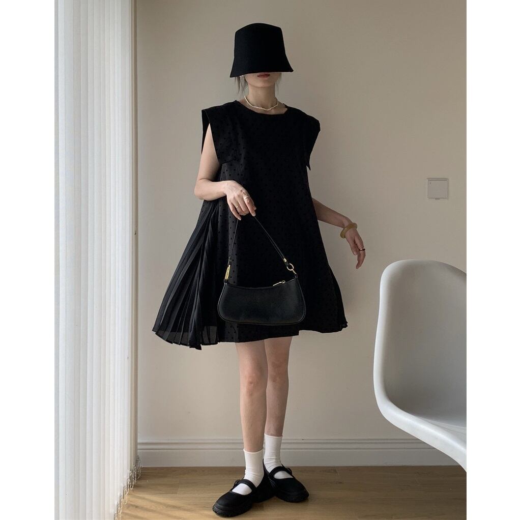 サイドシフォンプリーツ ドットミニワンピース ブラック OP00249