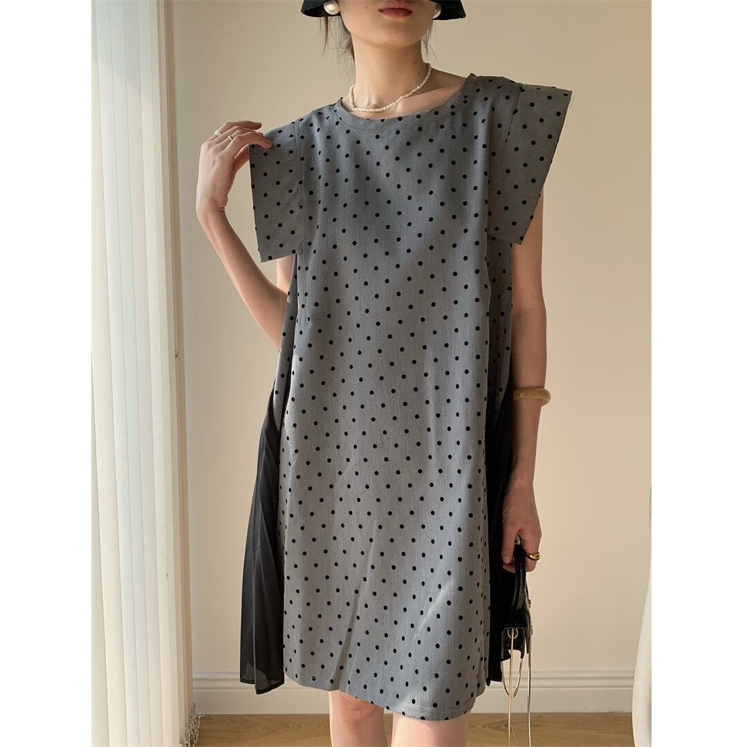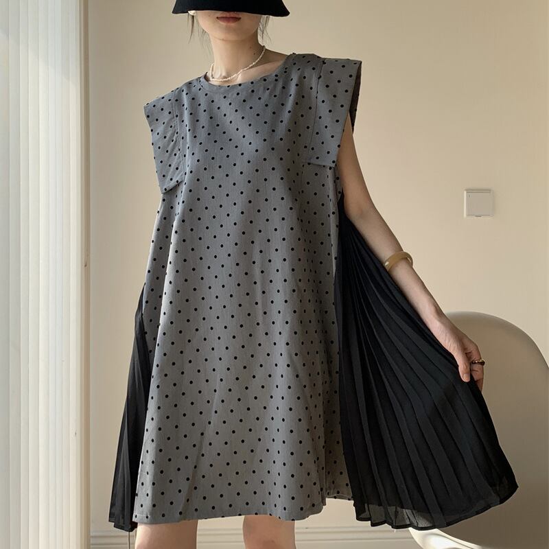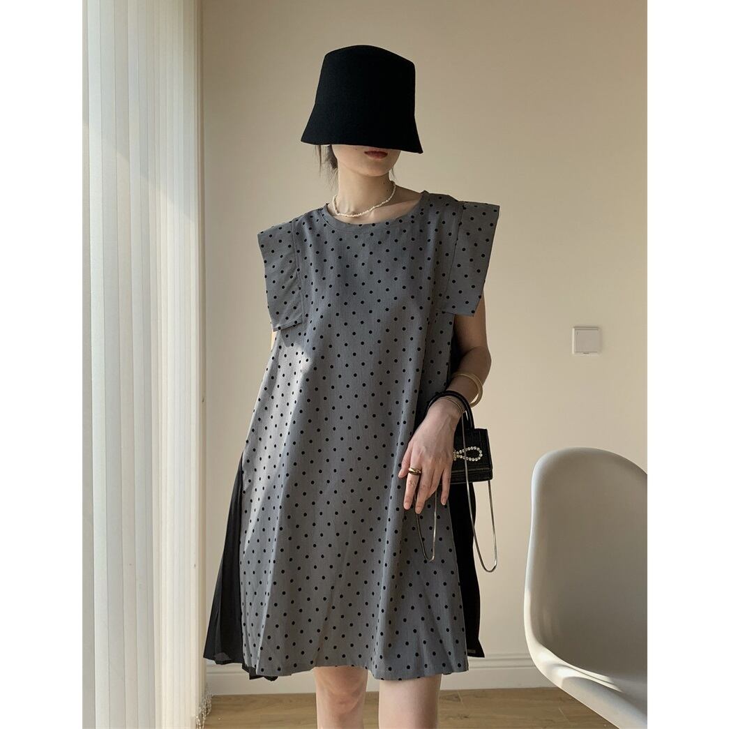 サイドシフォンプリーツ ドットミニワンピース グレー OP00248