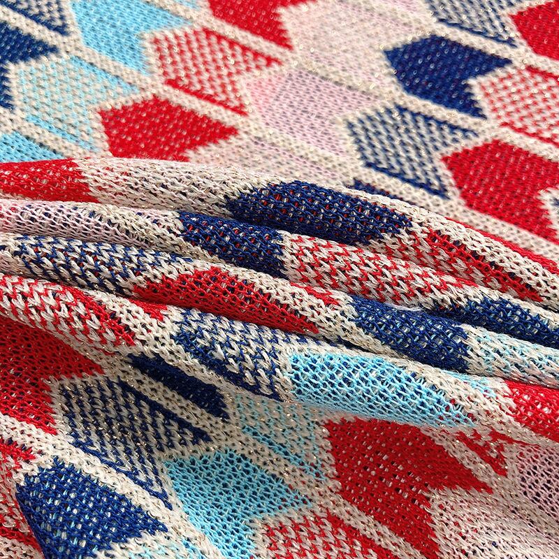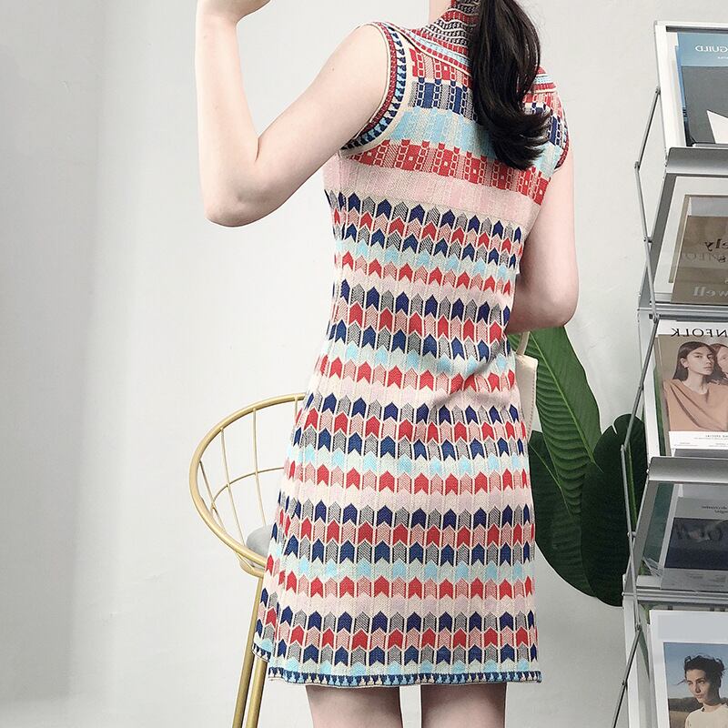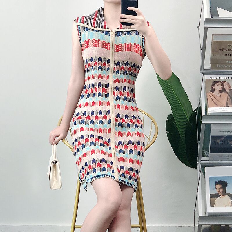 マルチカラーのシェブロンモチーフがスタイリッシュなニット素材のミニワンピースです。美しいカラーリングのシェブロンモチーフでエレガントな雰囲気に仕上がります。フロントのジッパーと衿のデザインもアクセントになっています。夏のお出かけにぴったりのポップなワンピースです。スニーカーやキャップ、ハットなどと合わせてカジュアルなコーデも楽しめます♪
