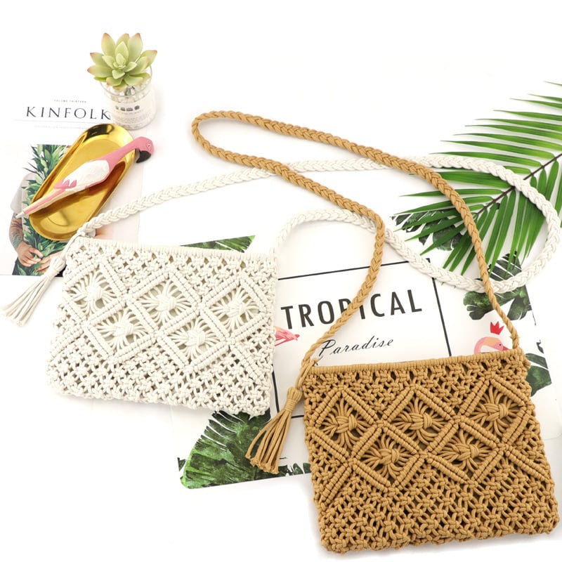 マクラメがスタイリッシュなロープニット素材のポシェットです。美しいマクラメの編み目とエレガントなデザインがコーデを華やかに彩ります。ショルダーストラップを調整して、ハンドバッグとしてもお使いいただけます。夏フェスやライブ、コンサート、アウトドアなどのアクティブなシーンにおすすめのバッグです。春夏のコーデにぴったりのデザインです。