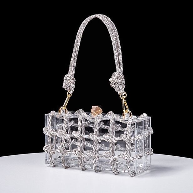 クリアのアクリルボックスにグリッターカラーのロープをアレンジしたユニークなボックスハンドバッグです。春夏だけでなく、華やかなシーンのパーティーバッグなどとしてもオススメの個性派デザインです。1年を通してコーディネートのアクセントになる、スタイリッシュなデザインです。それぞれイメージのちがう、6色展開です!
