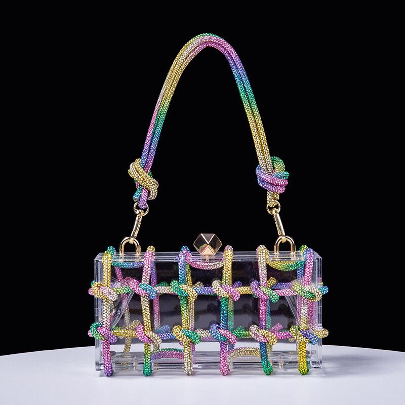 グリッターロープアレンジ クリアボックスハンドバッグ レインボー BA00617