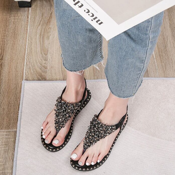 ビーズデコレーション バックストラップ フラットトングサンダル ブラック SH00235