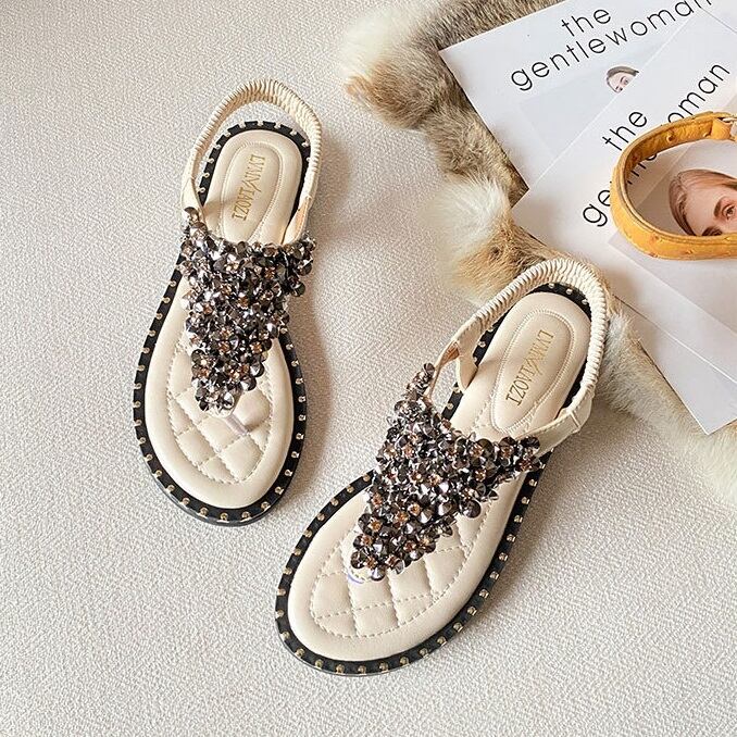 ビーズデコレーション バックストラップ フラットトングサンダル クリームベージュ SH00234
