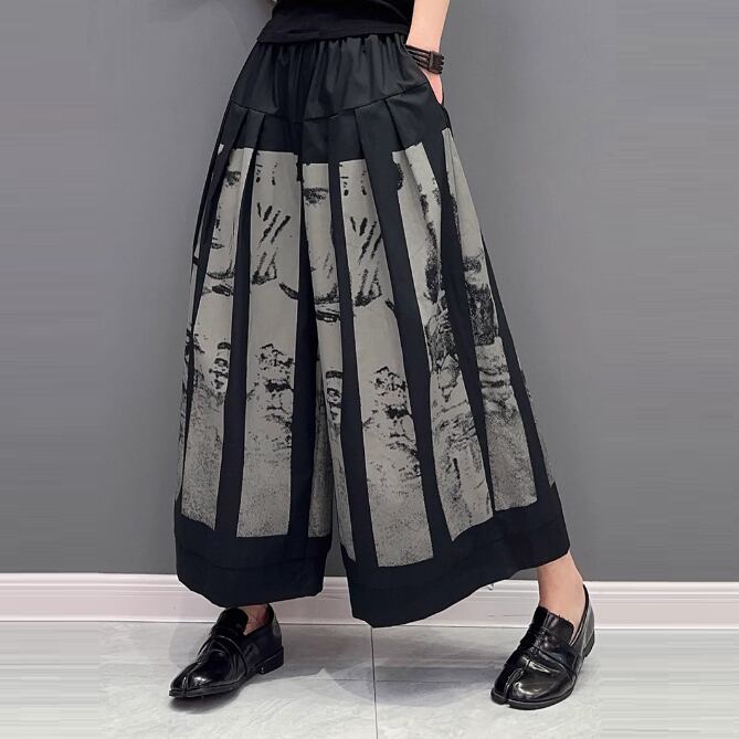 モノトーン グラフィックプリント ワイドレッグパンツ ブラック PT00092