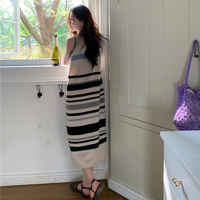 マルチカラーボーダー ノースリーブニットワンピース アイボリー OP00272