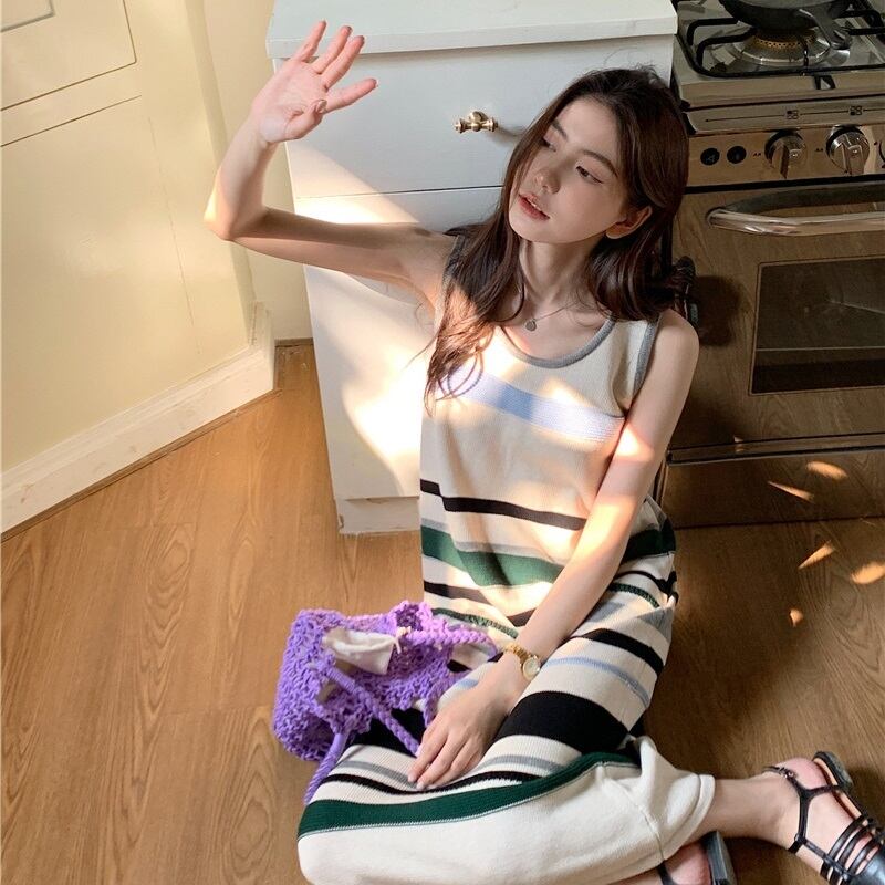 マルチカラーボーダーがポイントのノースリーブニットワンピースです。スタイリッシュなデザイン+着心地が良く、気温や湿度の高い真夏も快適にハイセンスなスタイリングが楽しめます。キャップやバケットハット+サンダルやスニーカーでカジュアルに着こなしても、ヒールサンダルとモードに着こなしても、夏のムードにぴったりのスタイリングが楽しめるワンピースです。