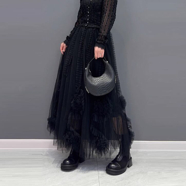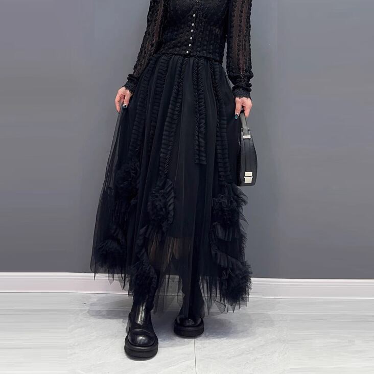 フラワー+フリルデコレーション チュールスカート ブラック SK00190