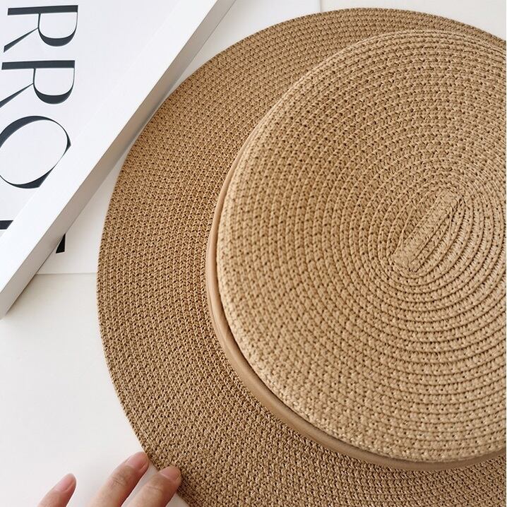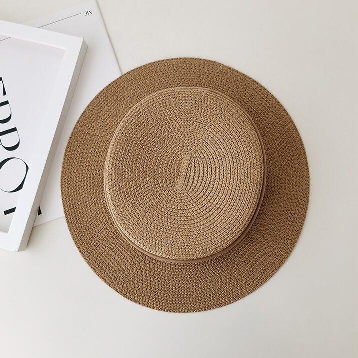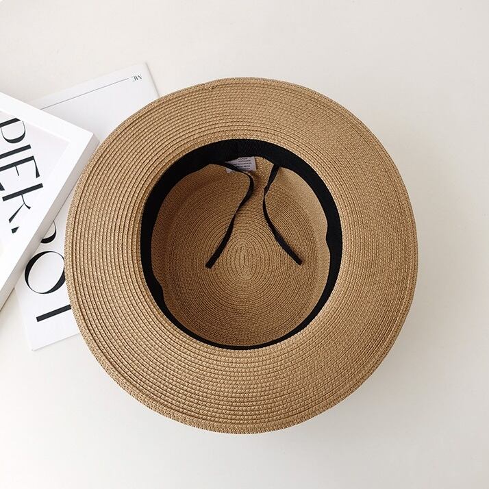 カフェオレ色のサテンリボンがエレガントなフラットトップのストローハットです。フェミニンにもマニッシュなスタイルにも合わせられるシンプルなデザインです。内側には便利なストラップもついています。日差しも防ぎ、センスアップもできる、春夏におすすめのストローハットです。