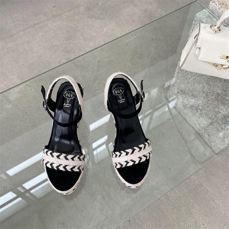 ジュートブレイド ウェッジソール アンクルストラップサンダル ブラック SH00259