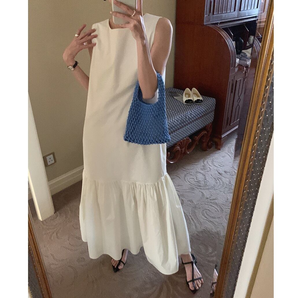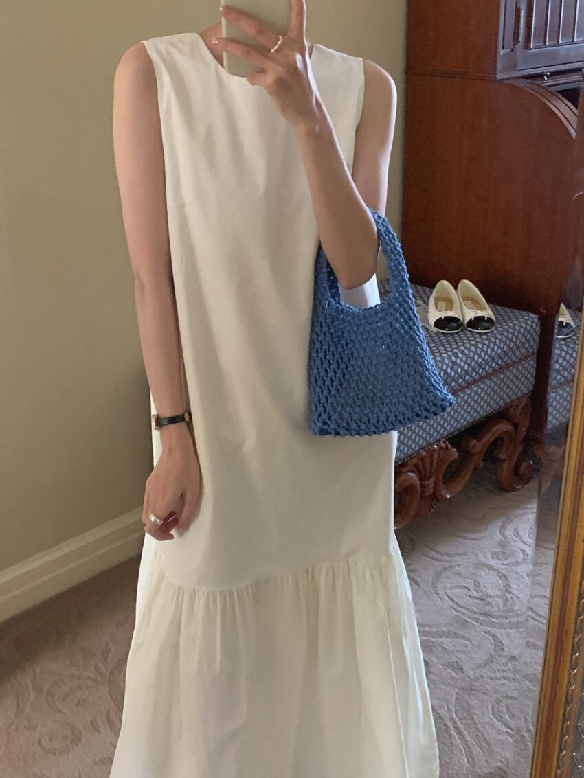 バックダブルストラップ マーメイドライン ノースリーブワンピース アイボリー OP00287