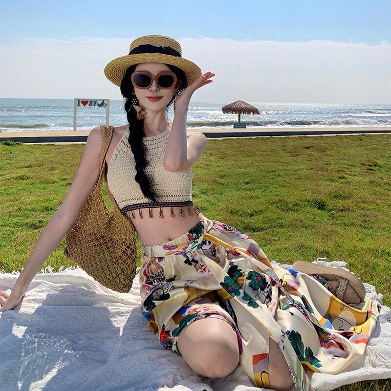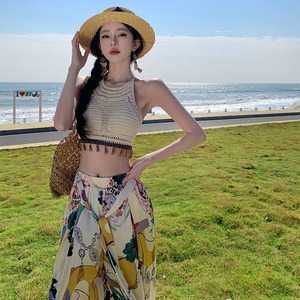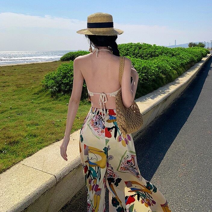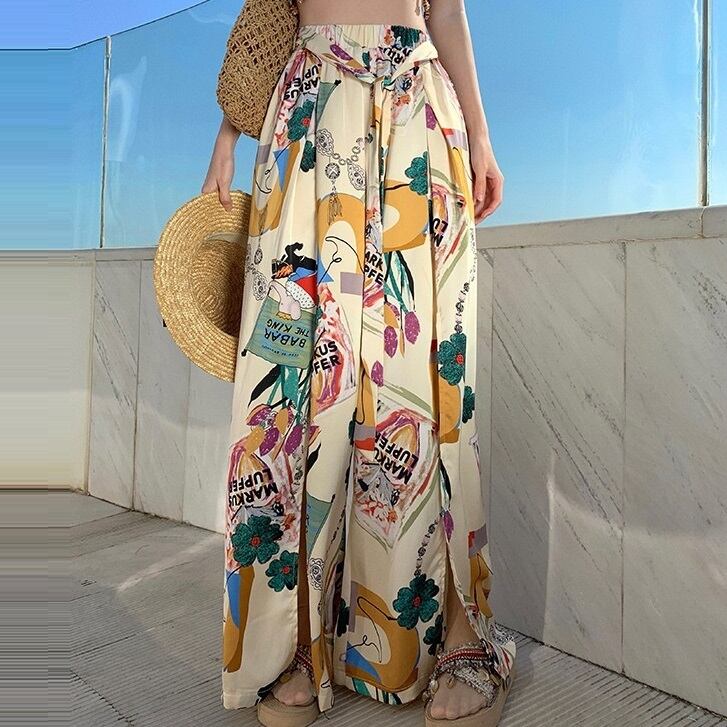 ライトベージュを基調としたフローラルプリントがスタイリッシュなワイドレッグパンツです。スニーカーでカジュアルに着こなしても、ヒールパンプスでエレガントにも、幅広いスタイルに対応します。1年を通してイージーに使えて、ハイセンスな着こなしが楽しめます。シワにならず、気軽にスタイリングができますので、旅行やプール、海などにもオススメです◎