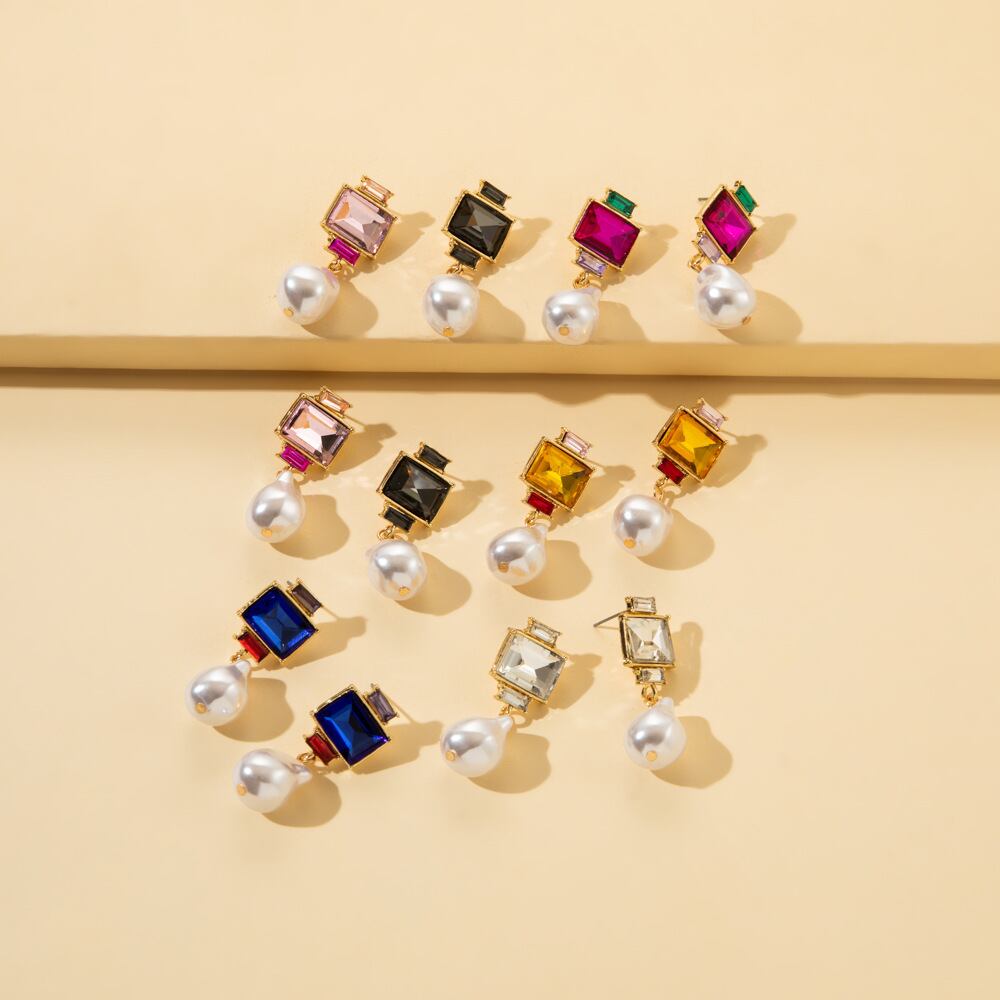3つのスクエアジルコニアとパールがポイントのスタイリッシュなドロップピアスです。エレガントでインパクトのあるデザインと、パールの揺れ感で、顔まわりを明るく華やかに見せてくれます。1年を通して、幅広いコーディネートのアクセントにおすすめの個性あふれるドロップピアスです。