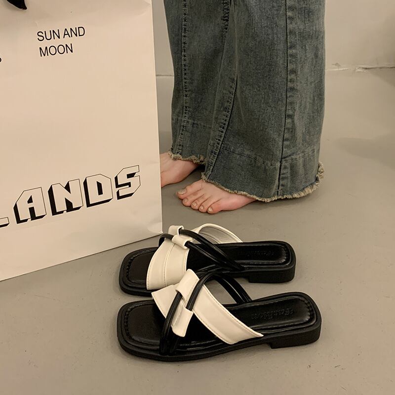 ストラップコンビネーション フラットサンダル クリームベージュ/ブラック SH00263
