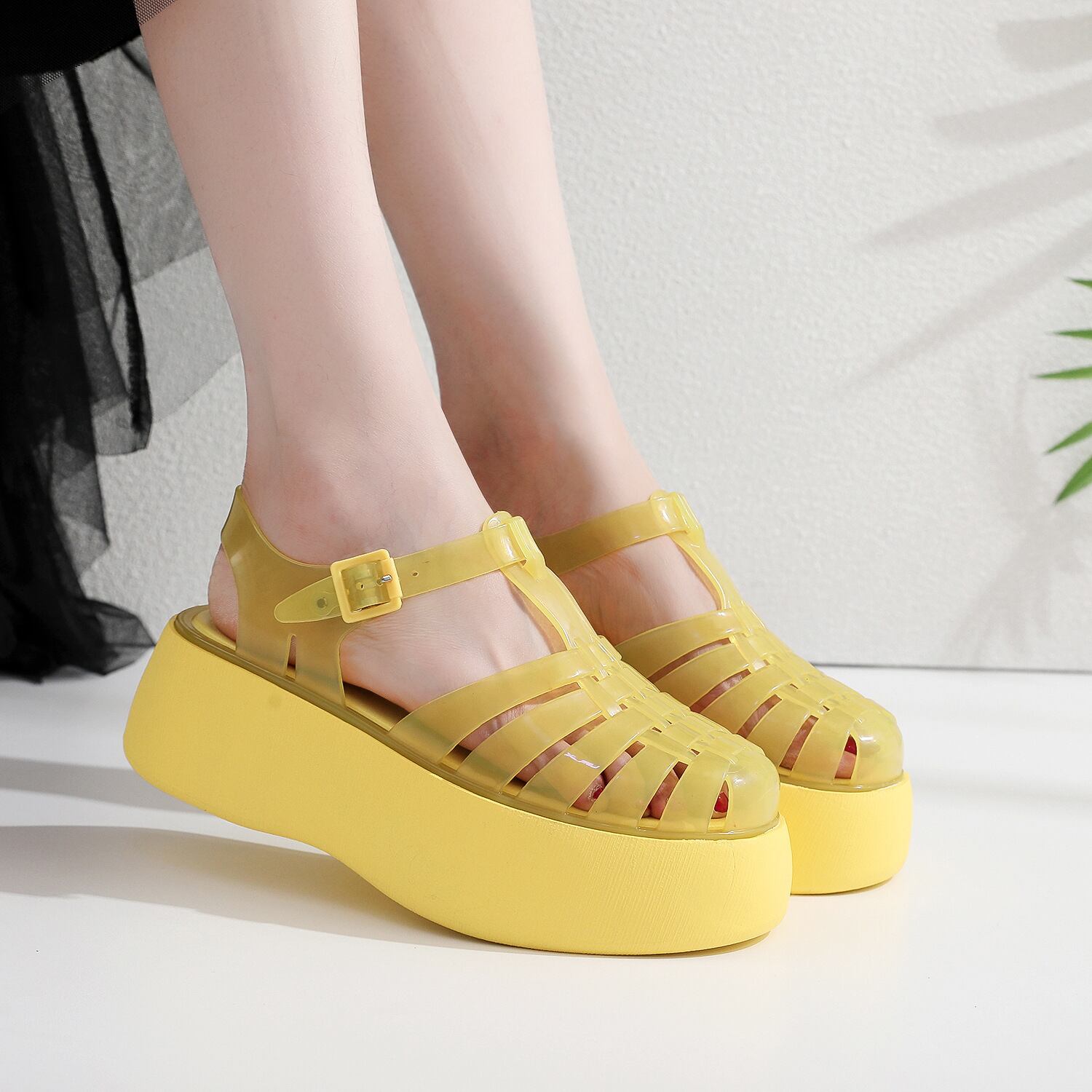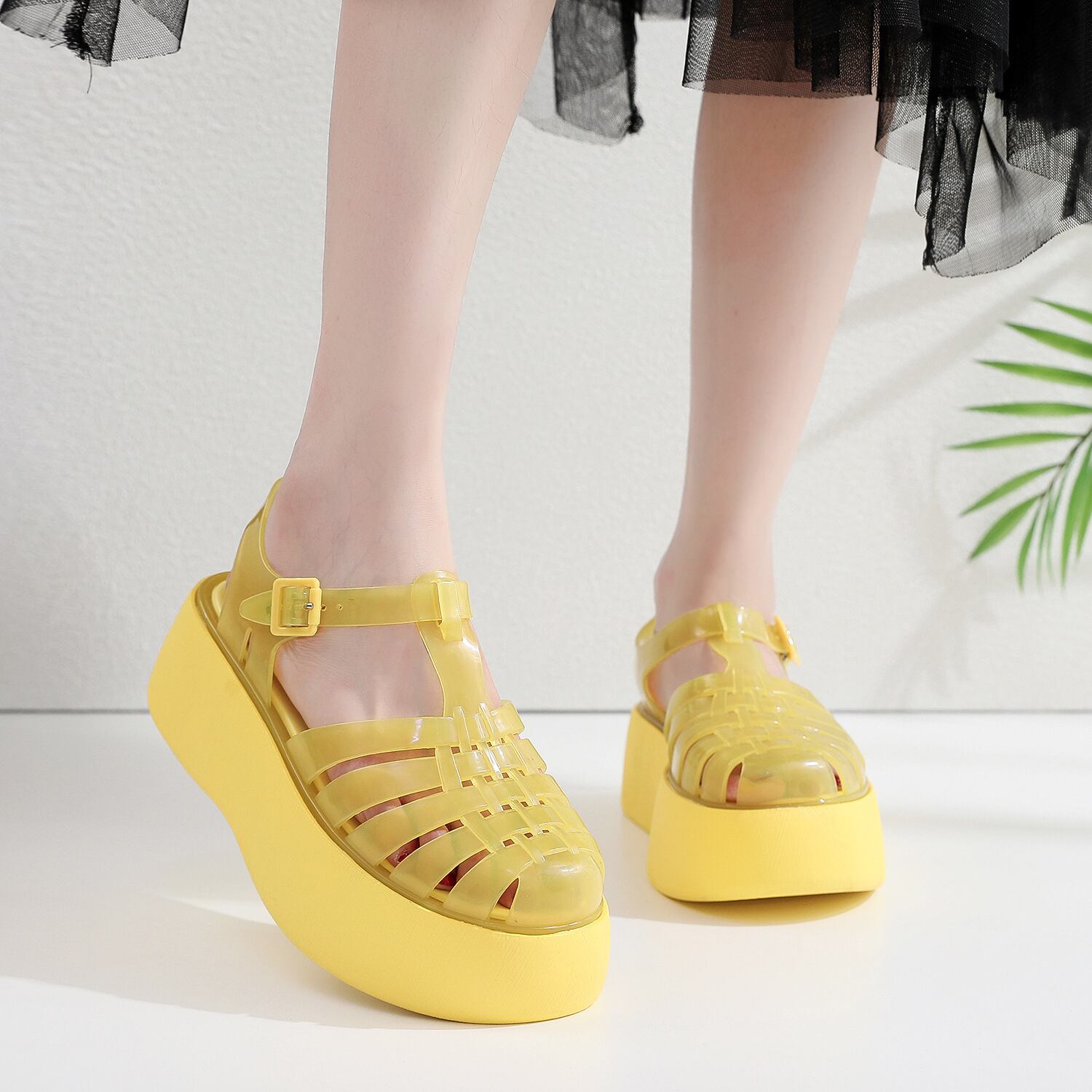 PVC バックストラップ プラットフォーム グルカサンダル イエロー SH00274