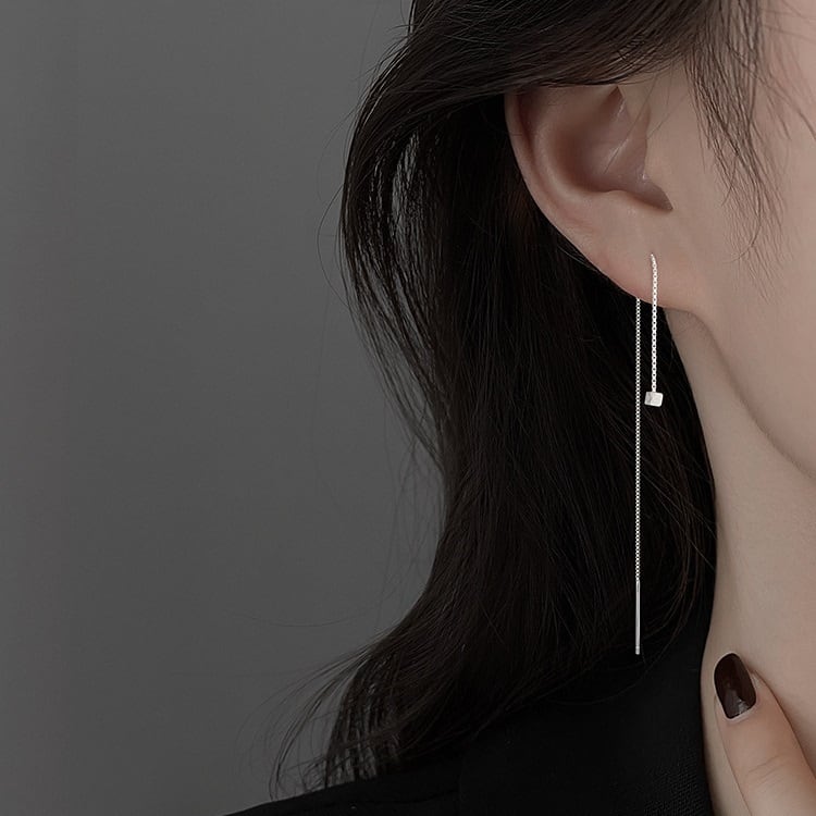 スクエアスタッズ ロングチェーンピアス(12.5cm)シルバー PR00200