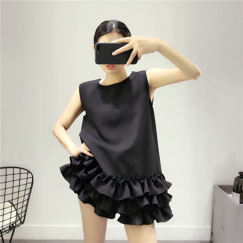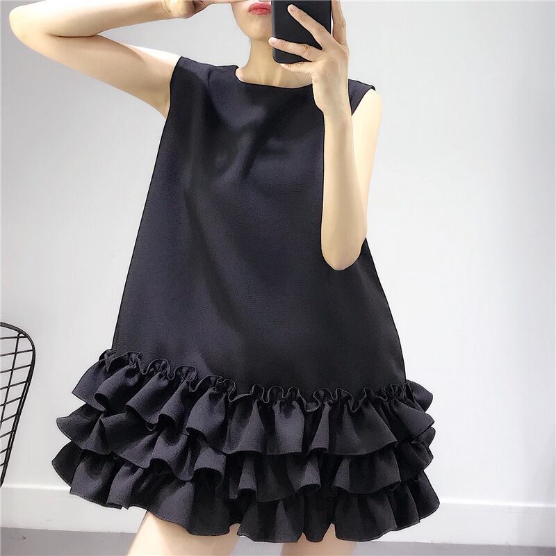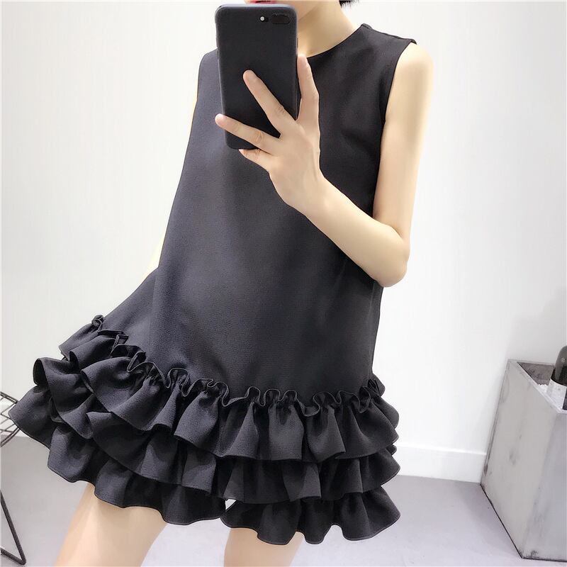 フリルレイヤード ノースリーブ ミニワンピース ブラック OP00302