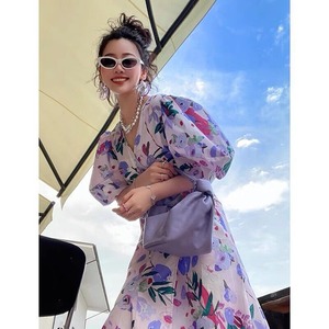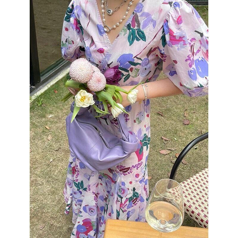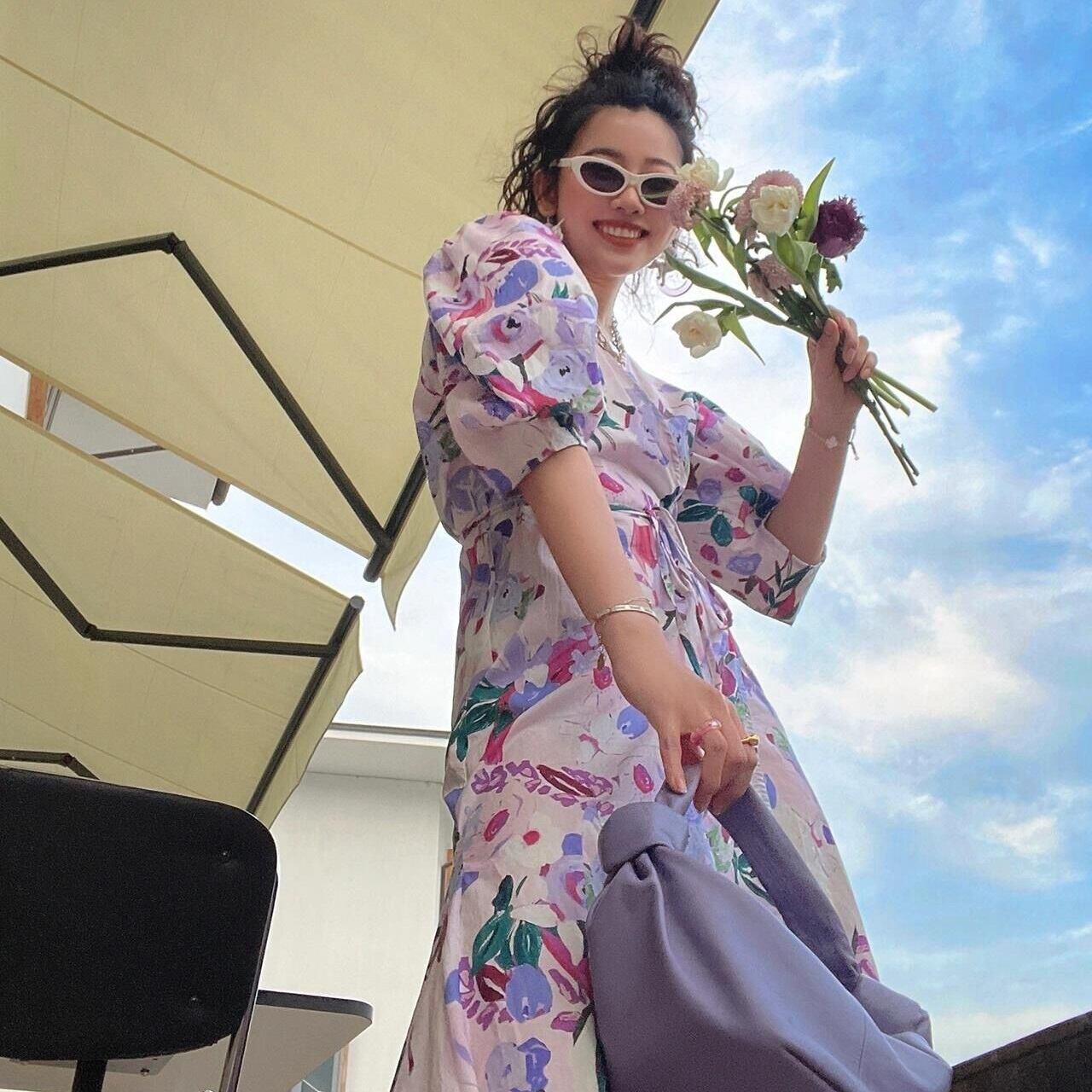 ペールピンクをベースとしたフローラルプリントがポイントのランタンスリーブのロングワンピースです。メリハリのあるデザインでロマンティックなコーディネートが完成します。春夏のムードを盛り上げるフェミニンなワンピースです。