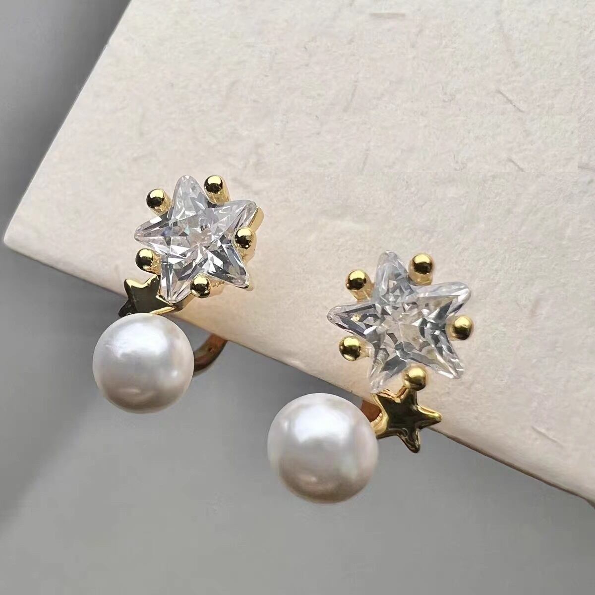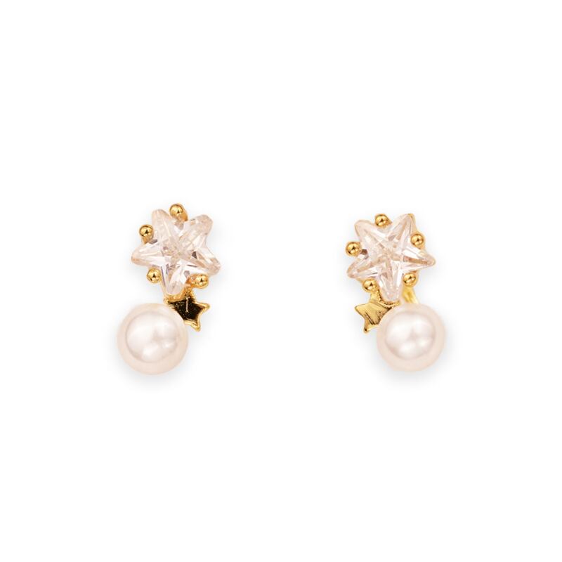 ジルコニアのスターとパールのコンビネーションがエレガントなスタッズピアスです。ジルコニアとパールが顔まわりを美しく華やかに見せてくれます。1年を通して、幅広いコーディネートのアクセントにおすすめのシンプルで使いやすいスタッズピアスです。