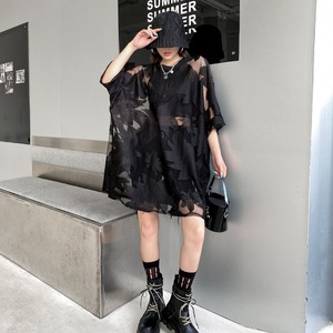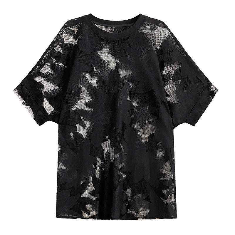 ジャカードデザイン シアーロングトップス ブラック CS00141