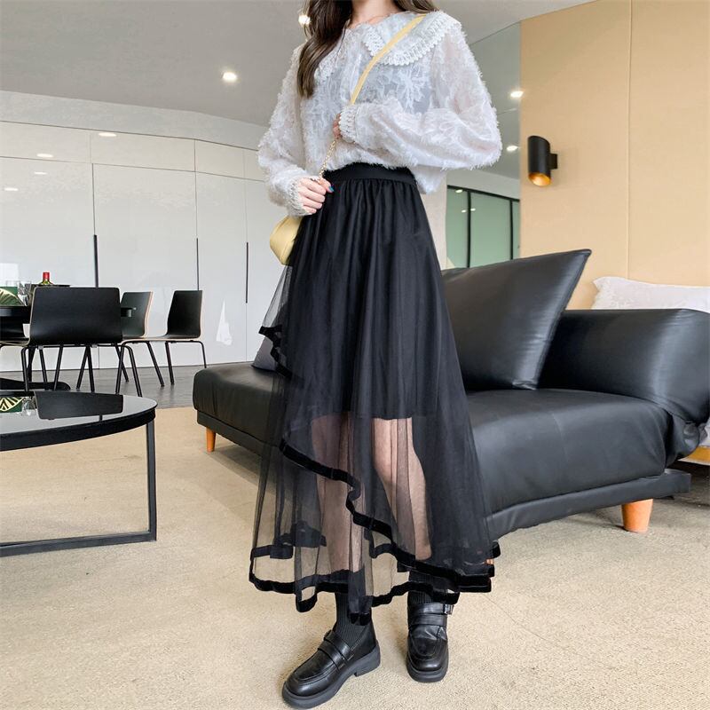 チュールドレープレイヤード ロングスカート ブラック SK00194