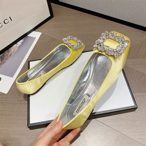 スクエアビジュースクエアトゥ サテンフラットパンプス クリームイエロー SH00296