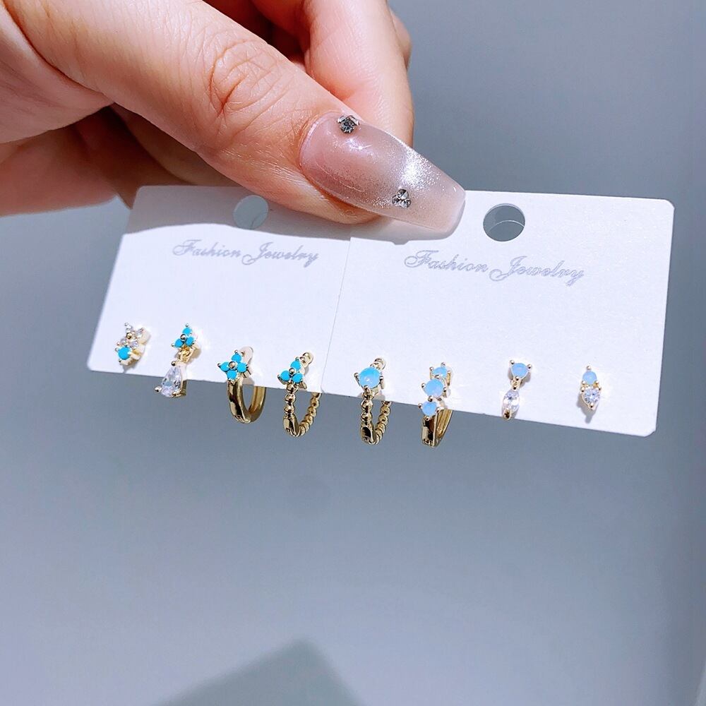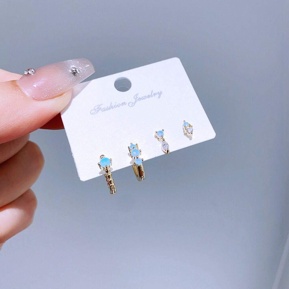 ミニフープピアス+スタッズピアス 4個セット ゴールド/ブルーオパール PR00208