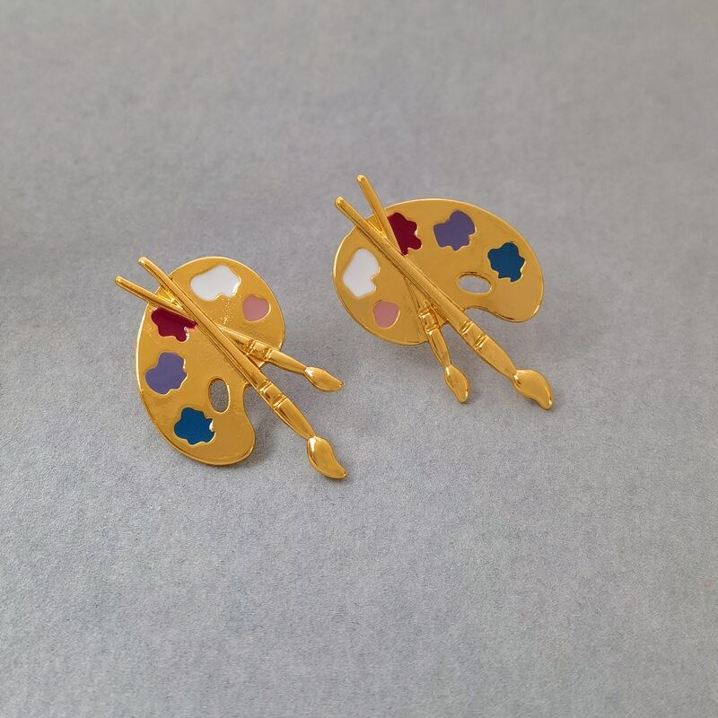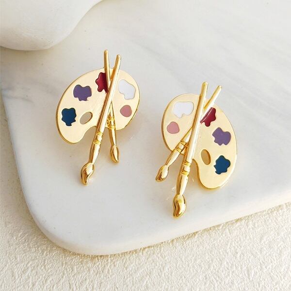 パレット&ブラシモチーフ スタッズピアス ゴールド PR00206