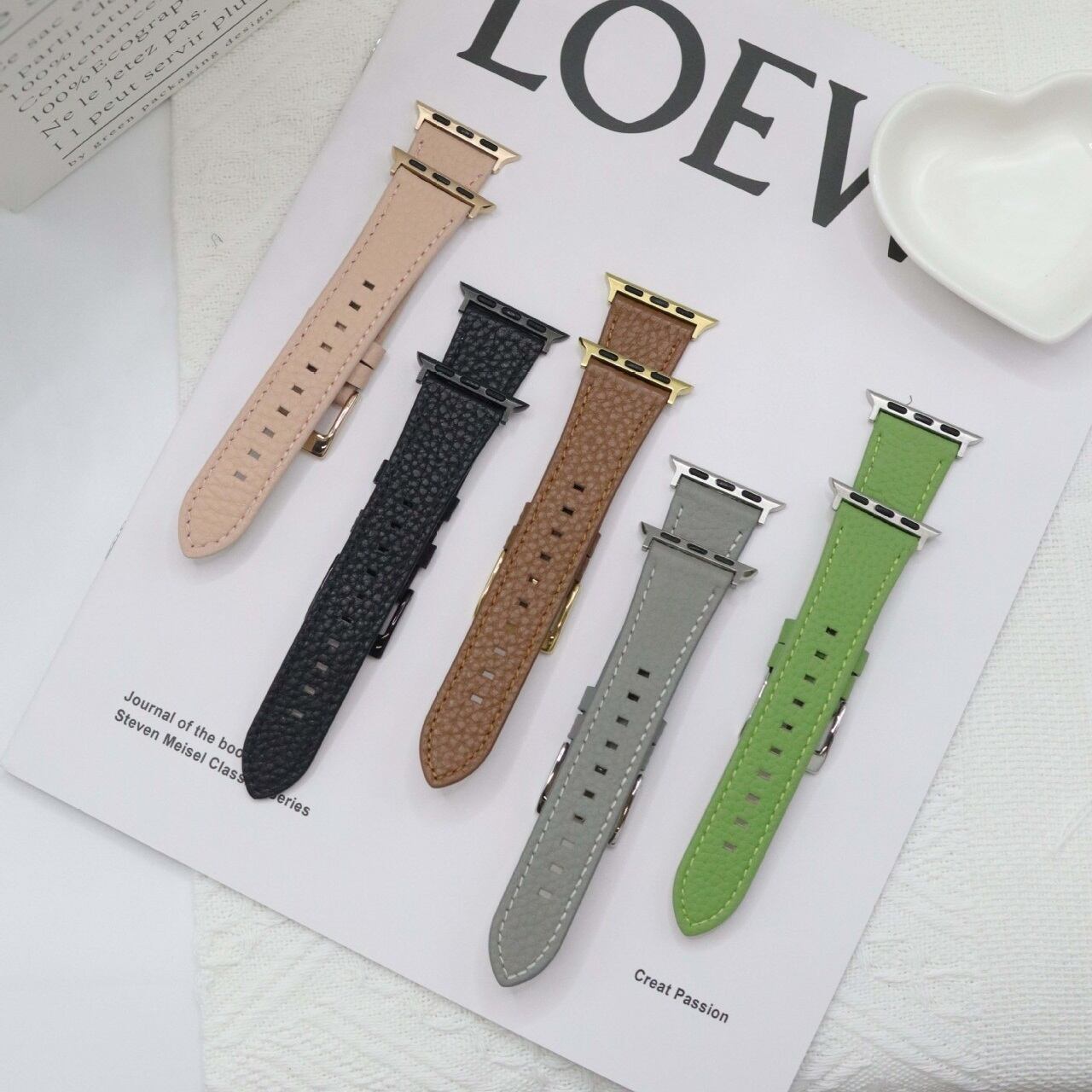 スタイリッシュなカラーリングのペブルドレザーを使用したApple Watchバンドです。上質なレザーを使用したシンプルなデザインで、スマートウォッチを上品にスタイリングできます。ブレスレット感覚でベルトを着け替えたくなる、オシャレなデザインです。それぞれベルトのカラーリングと金具のコンビネーションが楽しめる6色展開です。