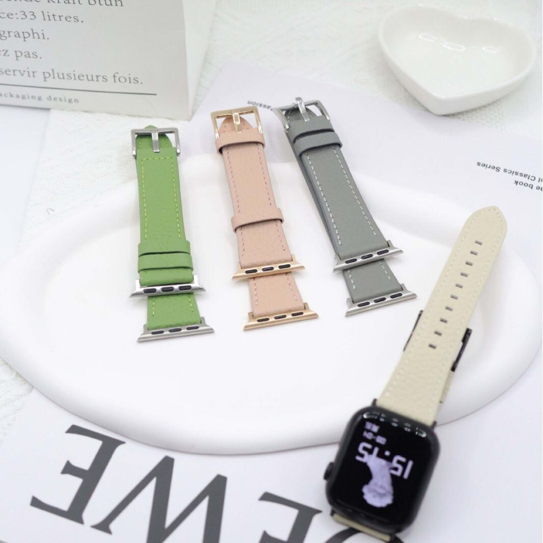 スタイリッシュなカラーリングのペブルドレザーを使用したApple Watchバンドです。上質なレザーを使用したシンプルなデザインで、スマートウォッチを上品にスタイリングできます。ブレスレット感覚でベルトを着け替えたくなる、オシャレなデザインです。それぞれベルトのカラーリングと金具のコンビネーションが楽しめる6色展開です。