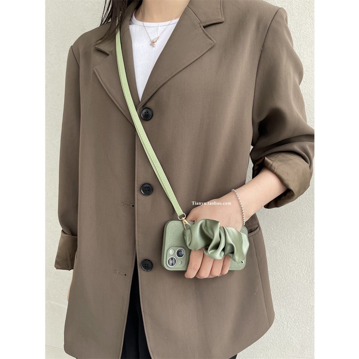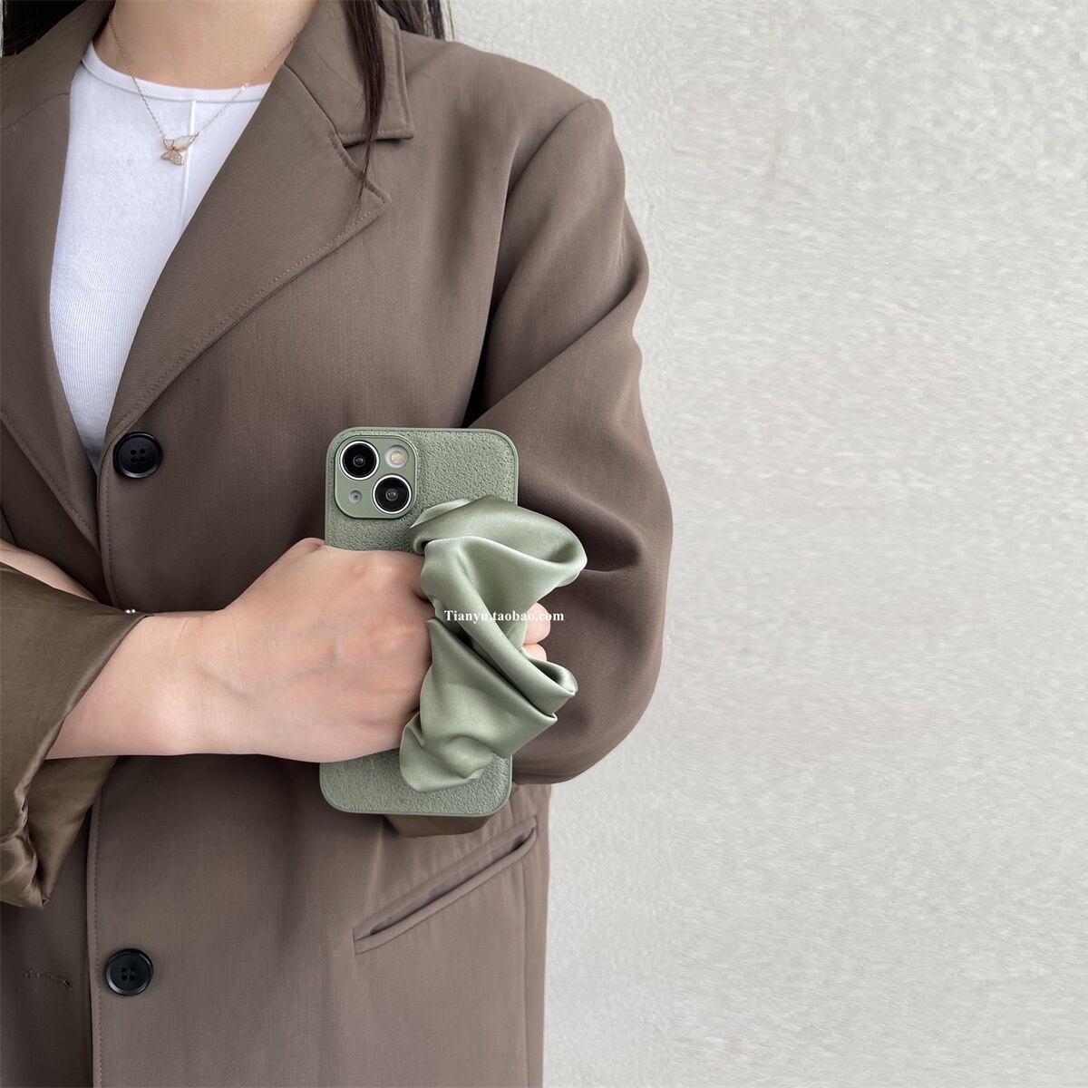 サテンリストバンド+ボディストラップ付き iPhoneケース セージグリーン TA00124