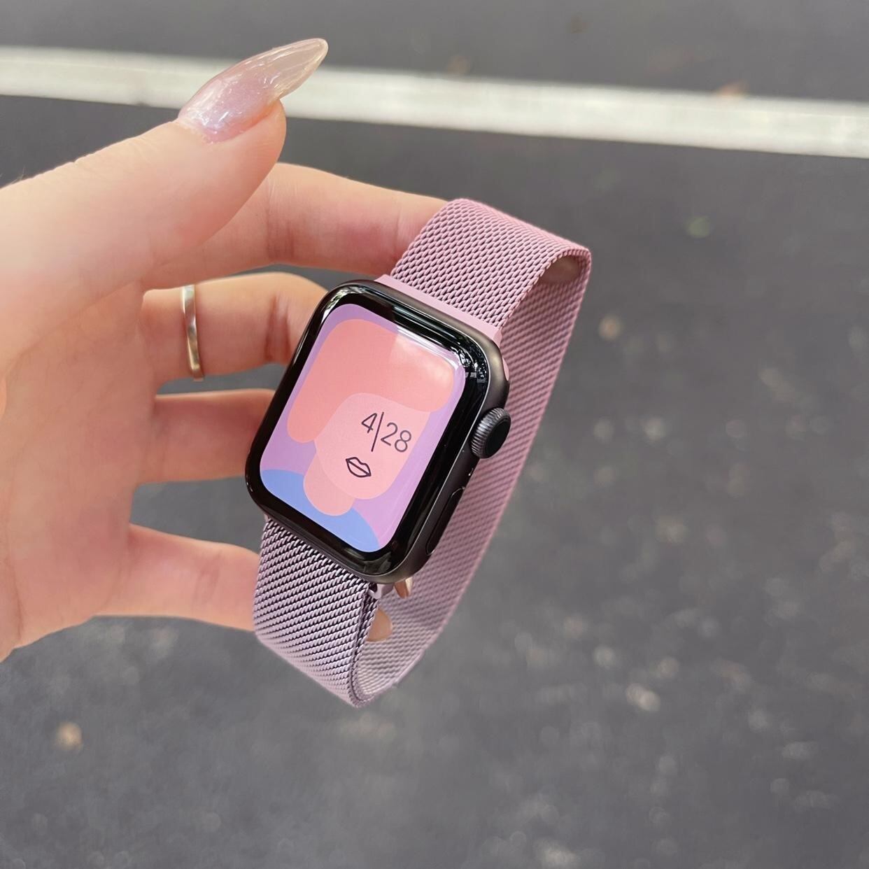 バイカラー ステンレスメッシュベルト Apple Watch バンド ライトピンク/ラベンダー TA00130