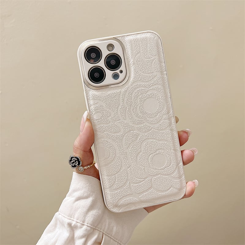 カメリアエンボス エコレザー iPhoneケース アイボリー TA00138