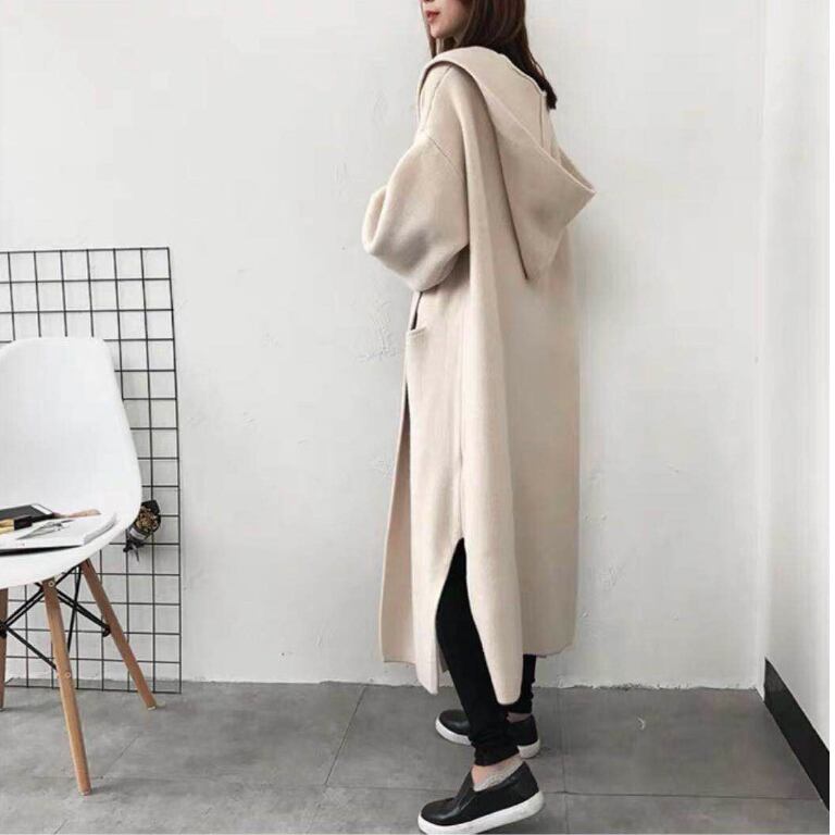 フード付き ラグランスリーブ ロングニットカーディガン クリームベージュ NI00308